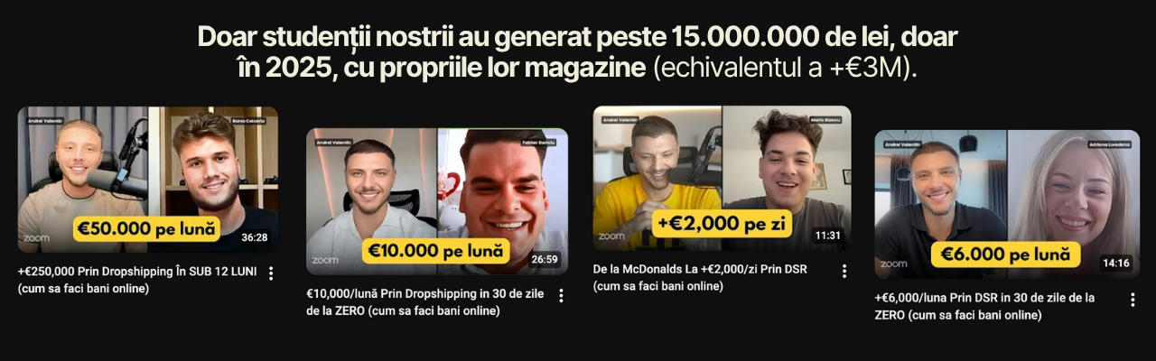 Primești acces la sistemul nostru testat și retestat la maximum, care e deja dovedit să funcționeze, încât să nu existe riscul ca tu să dai greș. Același sistem care, doar în anul 2025, a adus peste 4 milioane de euro în vânzări doar pentru studenții lui Andrei.
